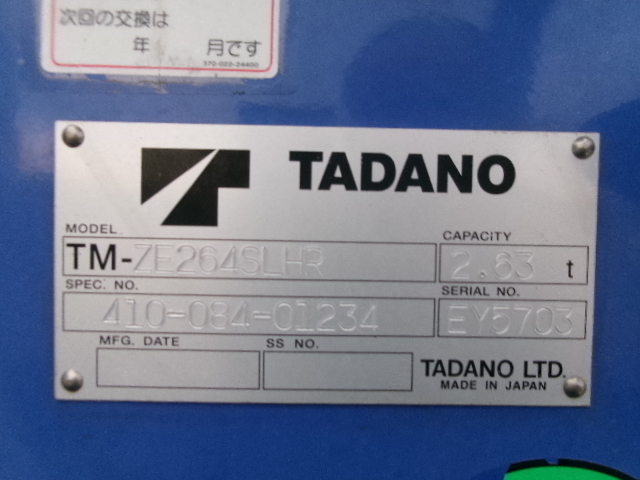 | 車両形状 | ハイジャッキクレーン付 | 上物メーカー | タダノ | ||